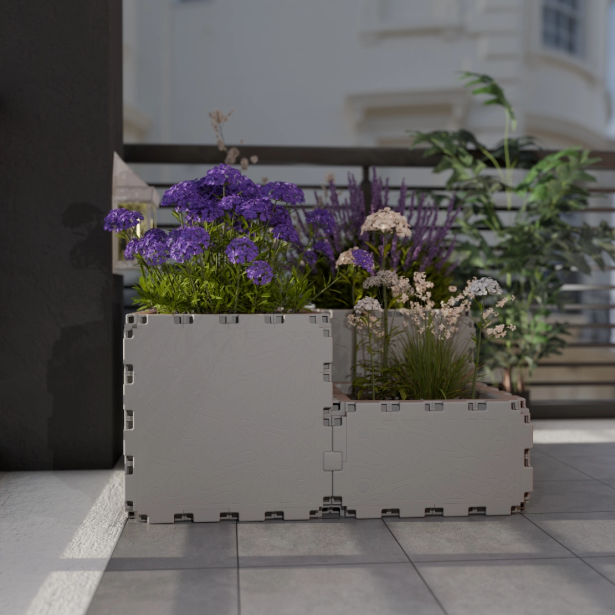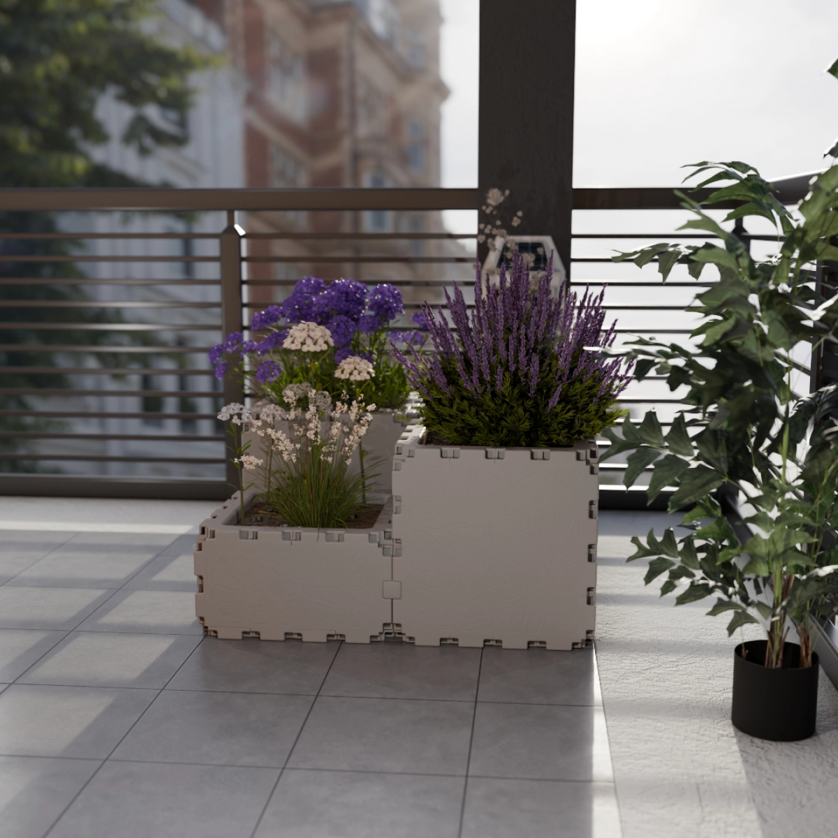 A modular planter made from four cubes designed for small decorative plant arrangements. It allows you to combine different plants and create compact flower displays.