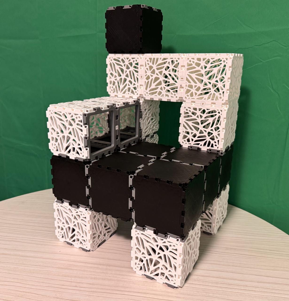 В снимките: 3D модел, модел, направен от миникубчета, и реален
