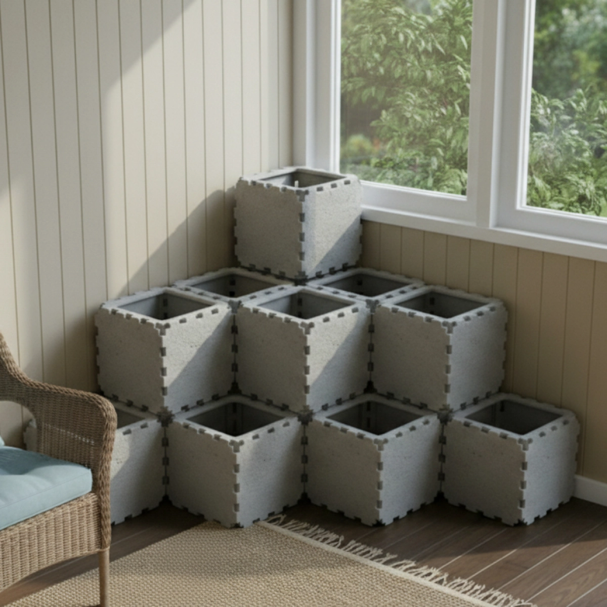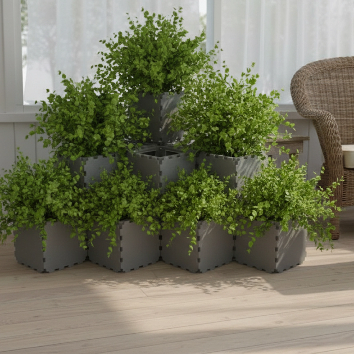 All other planting cubes are made with hollow VOID panels. This design gives plant roots more свободы and пространство to grow naturally. The open internal structure allows the root system to spread and intertwine through the VOID cavities, which is especially beneficial for декоративные indoor plants.