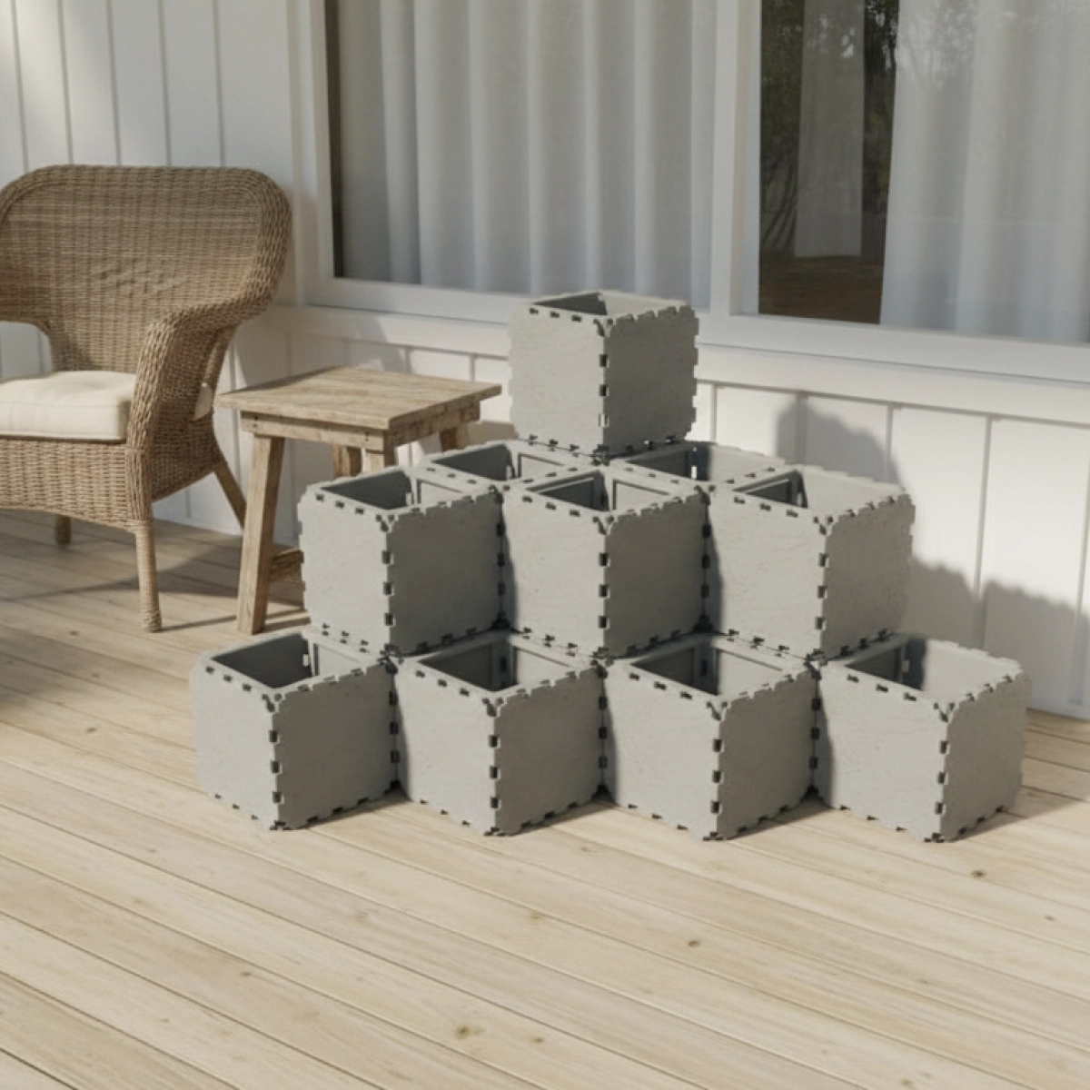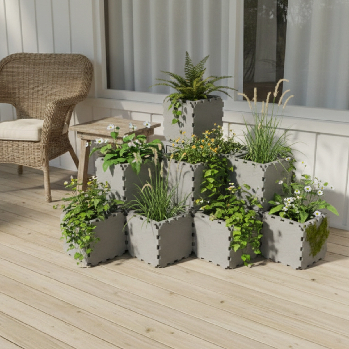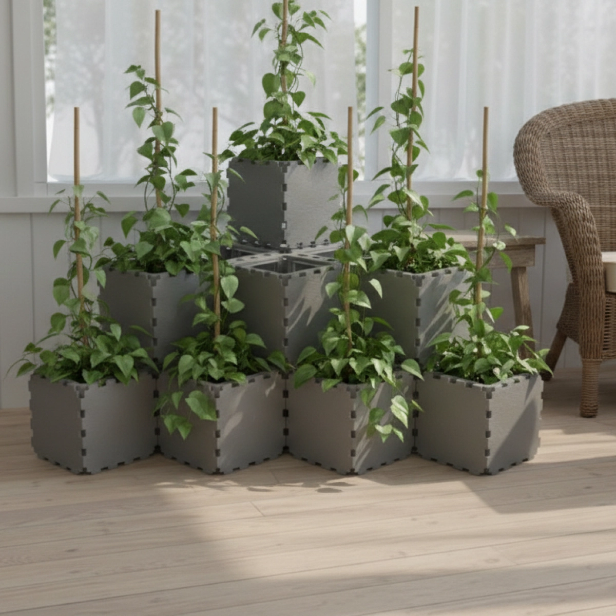 The tallest central column, made of 3 stacked cubes, is built using solid ZEN panels. This reinforced core strengthens the entire structure, improves stability, and also helps reduce the amount of soil needed inside the planter.