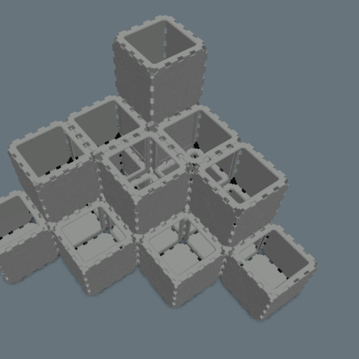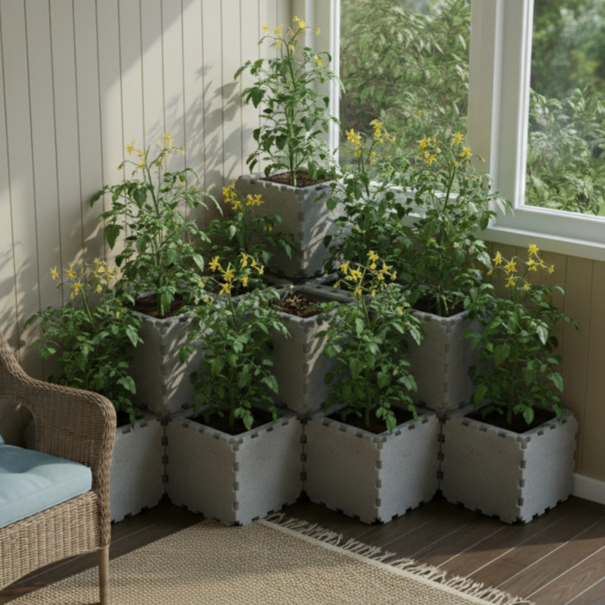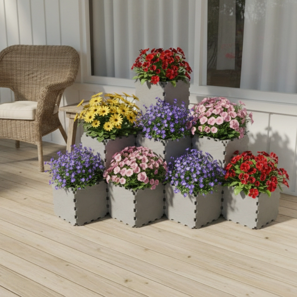 The tallest central column, made of 3 stacked cubes, is built using solid ZEN panels. This reinforced core strengthens the entire structure, improves stability, and also helps reduce the amount of soil needed inside the planter.