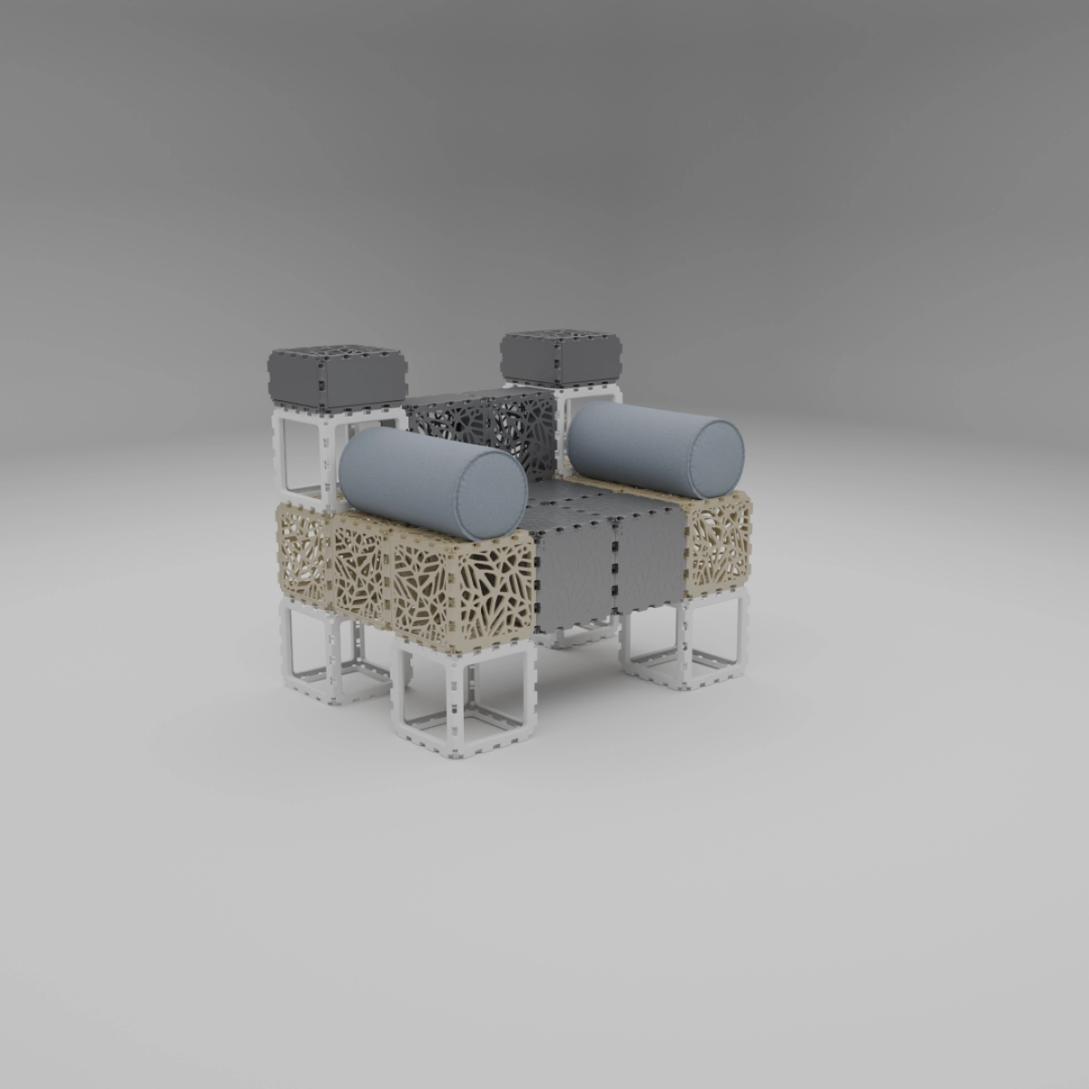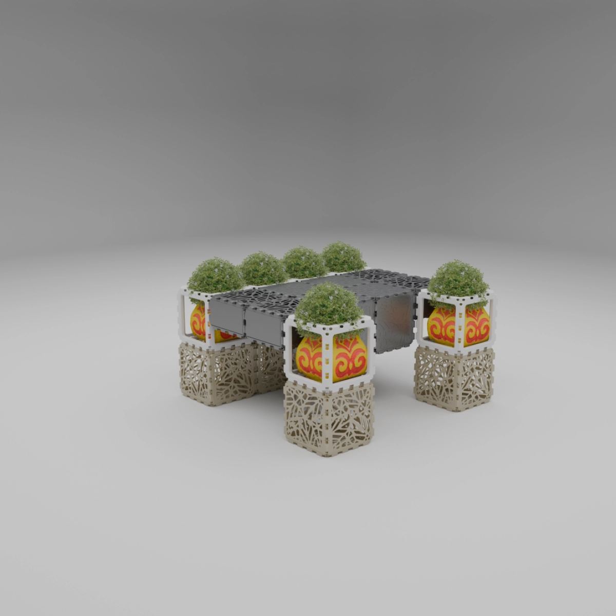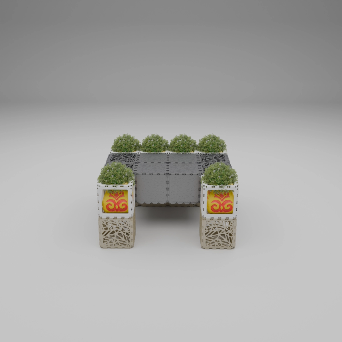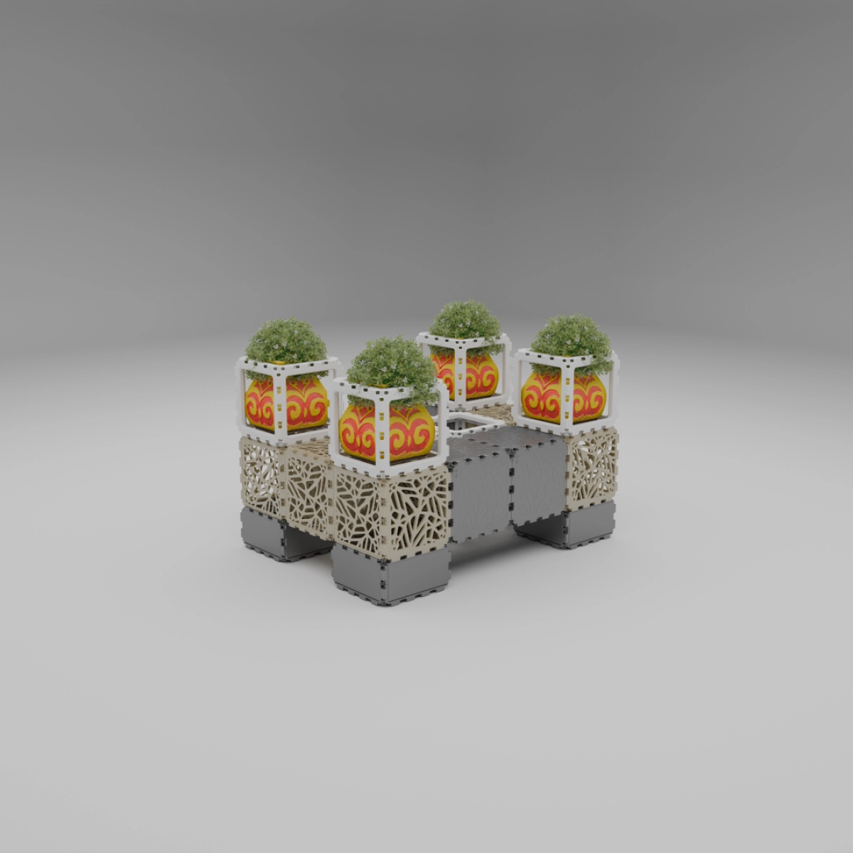 This set allows you to build a variety of objects — from benches and armchairs to decorative compositions with plants. Assembly of any structure takes up to one hour. The examples shown demonstrate just a few possible configurations — the rest depends entirely on your imagination.
