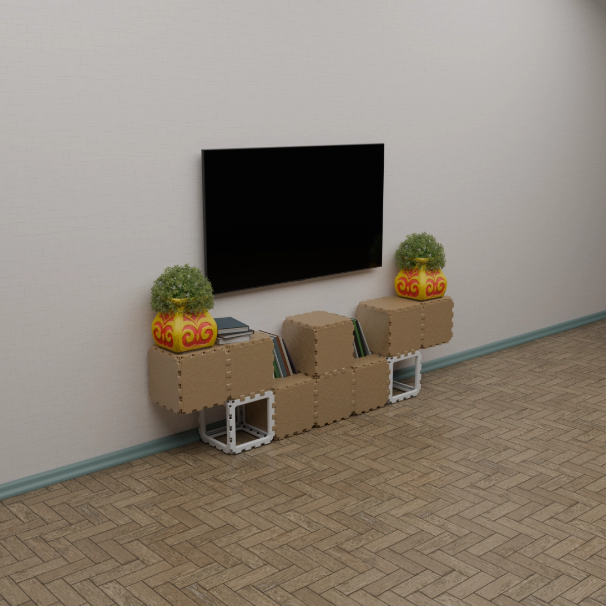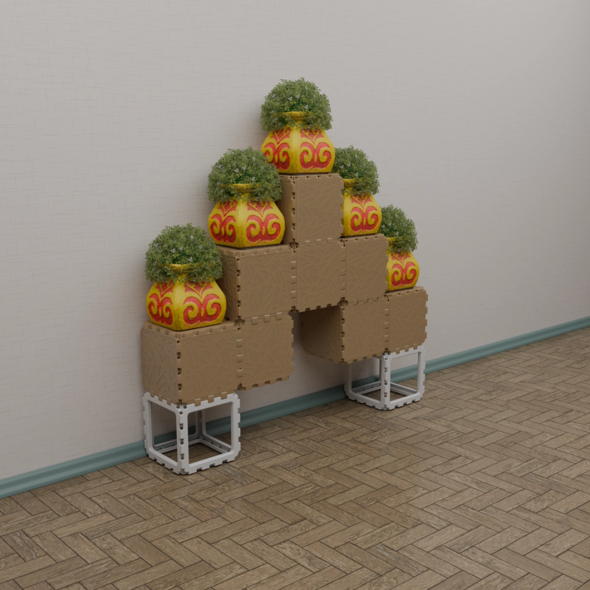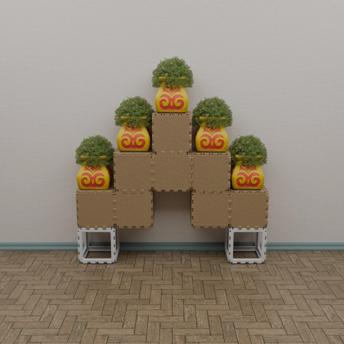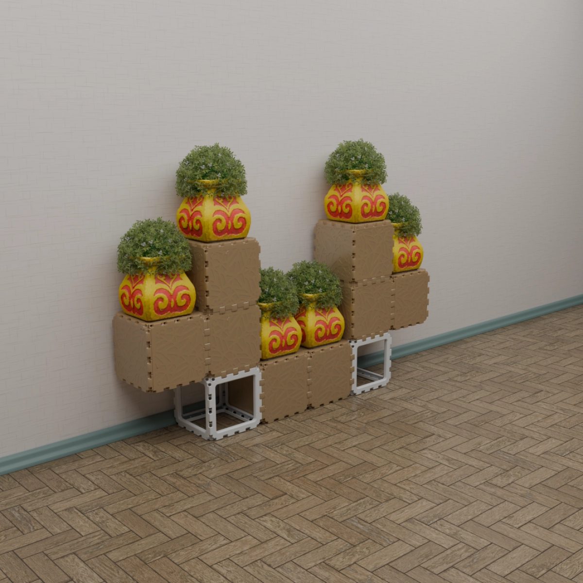 A compact modular kit that lets you build a variety of small objects — from benches and shelves to decorative stands and planters. The examples shown are just a few of the countless combinations you can create. Each cube connects freely, allowing unlimited experimentation and personal expression. Designed for both indoor and outdoor use, this set is a simple way to explore the Cubik.one system and bring your own ideas to life.