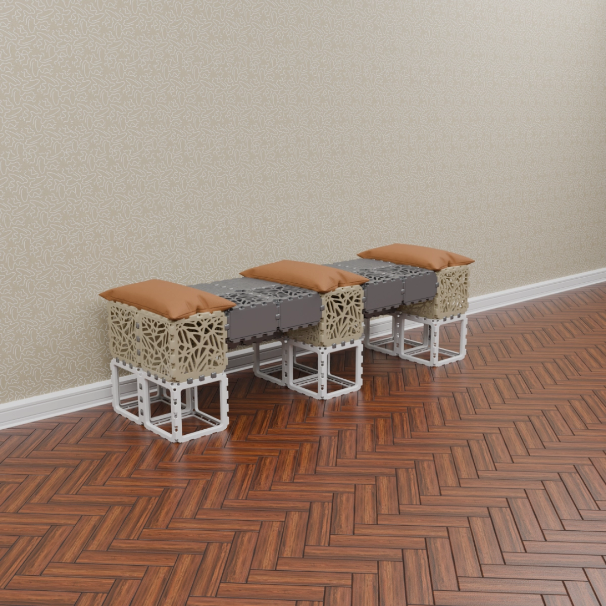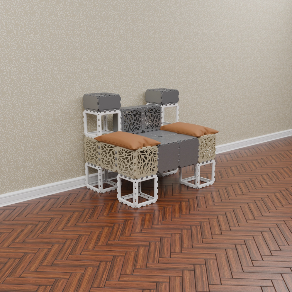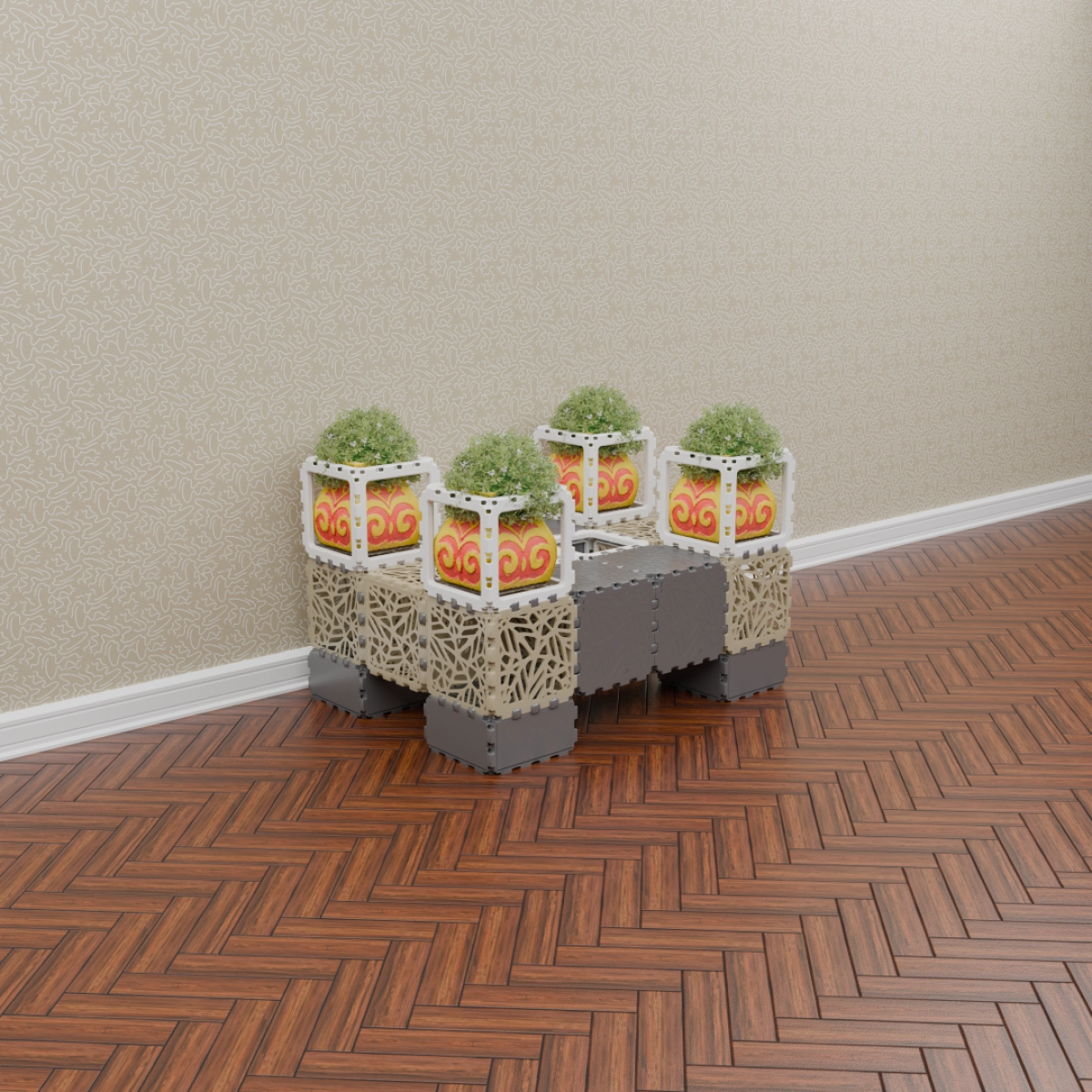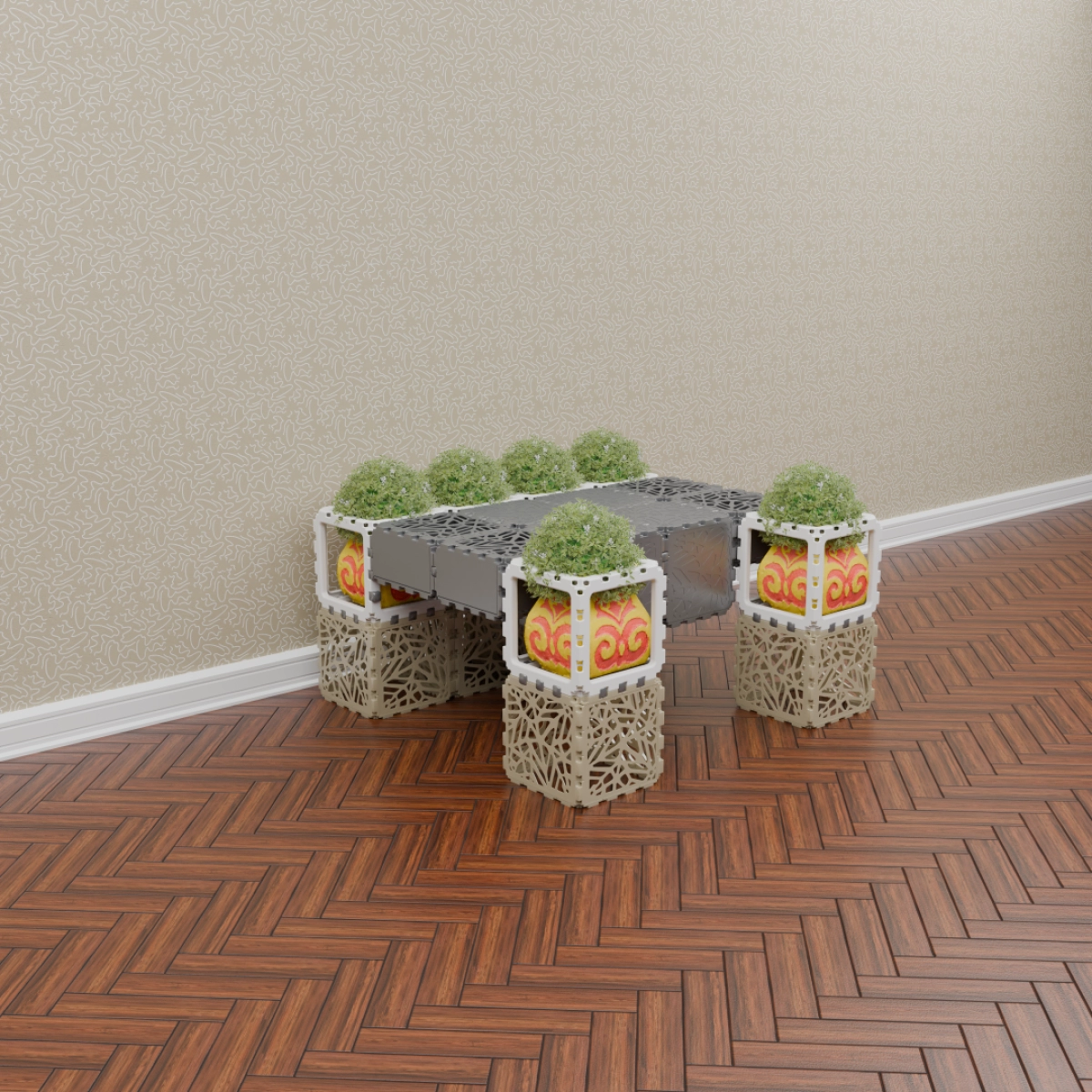 This set allows you to build a variety of objects — from benches and armchairs to decorative compositions with plants. Assembly of any structure takes up to one hour. The examples shown demonstrate just a few possible configurations — the rest depends entirely on your imagination.