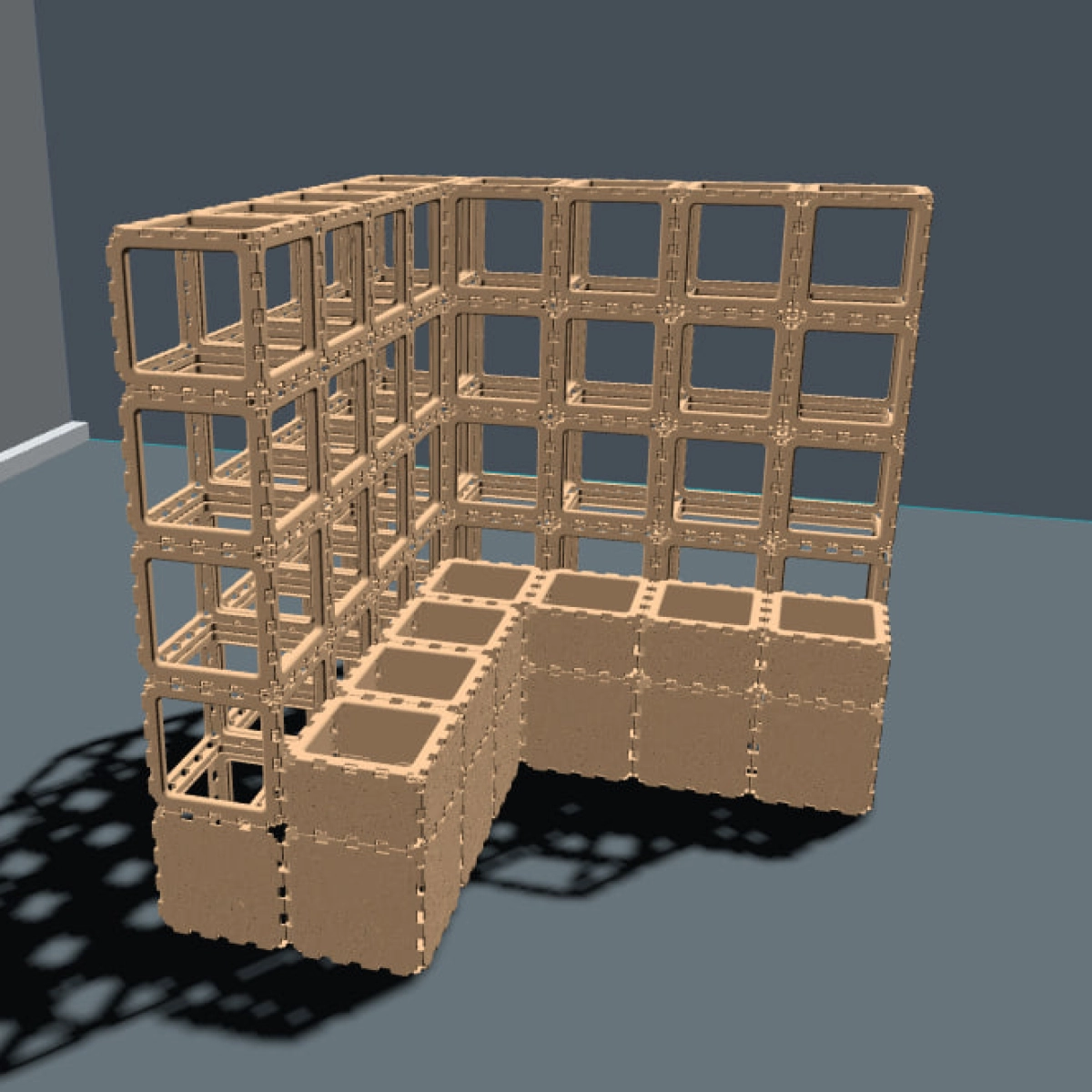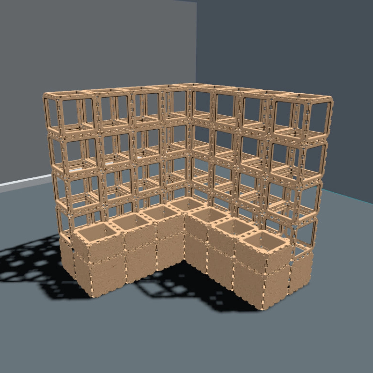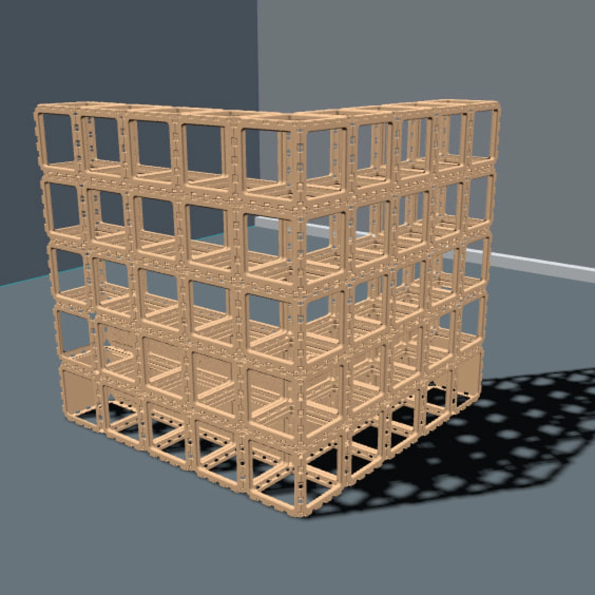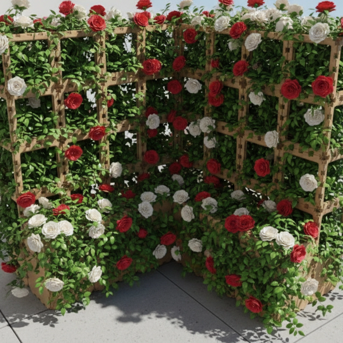 This modular corner stand is designed for vertical greenery and climbing plants. The lower solid cubes form stable planters, while the upper open-frame structure creates a lightweight support system for vines to grow and intertwine naturally.