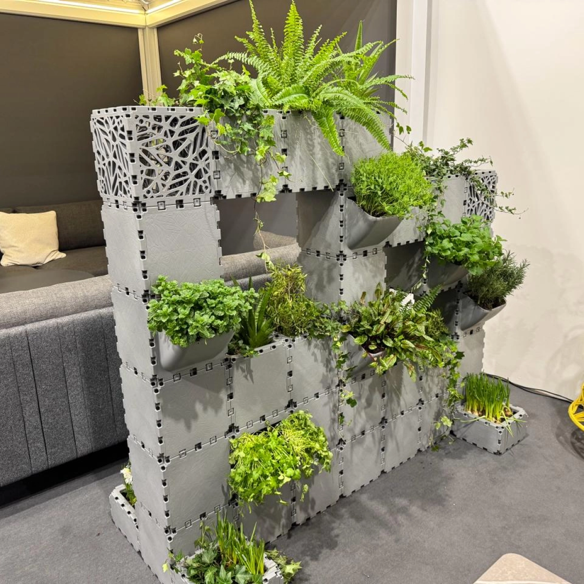 Modular Green Wall Planter is a vertical planter wall designed for interior and semi-interior spaces such as kitchens, studios, and living areas. The modular grid structure allows planters and decorative panels to be freely arranged, creating a living green wall that acts as both a visual accent and a functional plant system. Suitable for herbs, ornamental plants, and cascading greenery, it integrates naturally into modern interiors while keeping the floor area clear.
