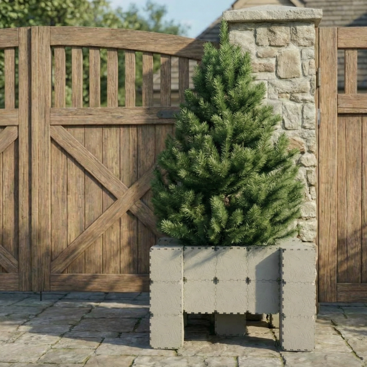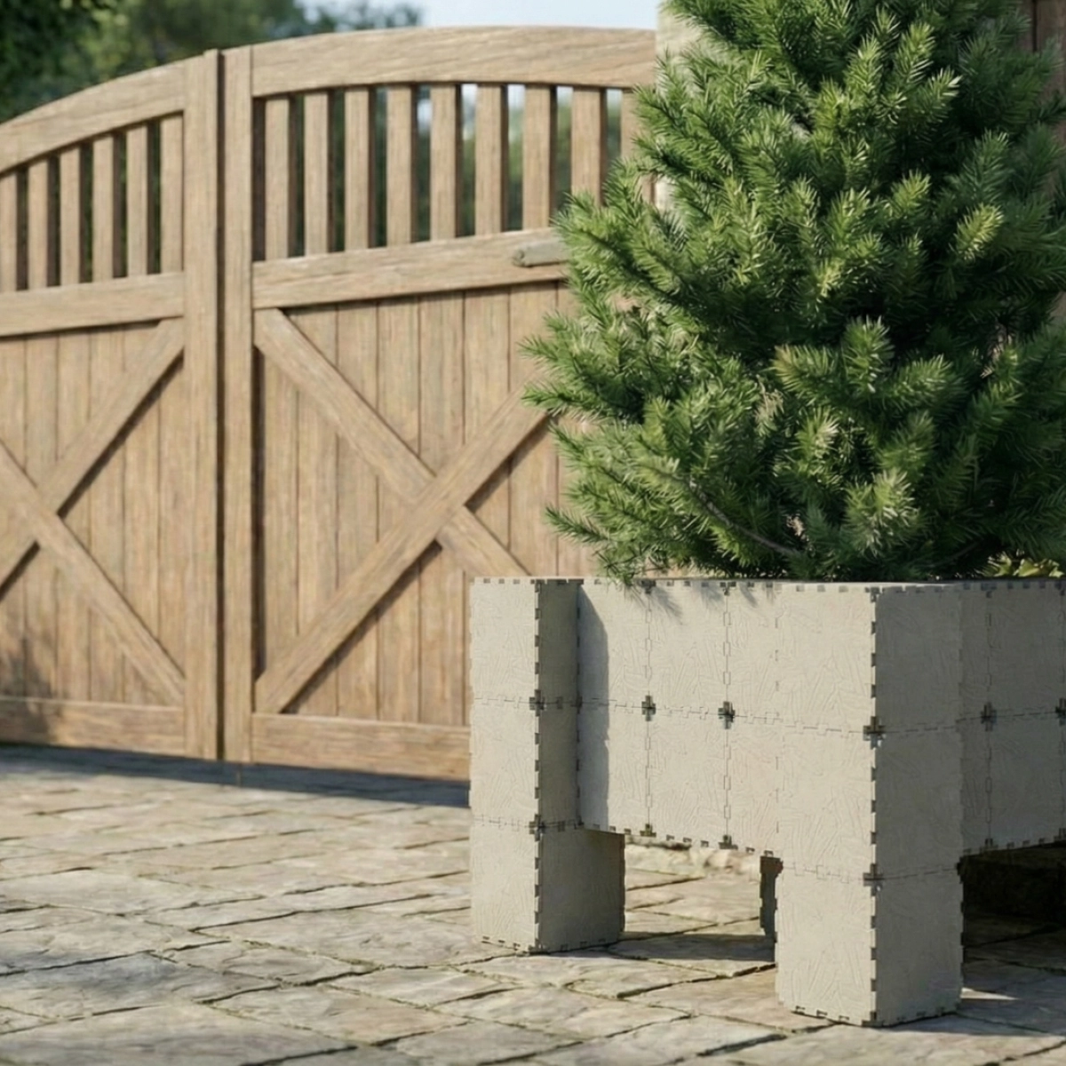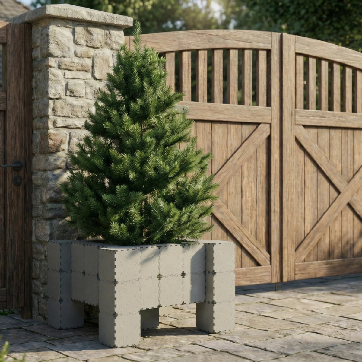 A modular planter designed as a raised pedestal for small trees and shrubs. The elevated structure visually separates the plant from the ground, adds architectural emphasis, and improves drainage and airflow. Suitable for courtyards, entrances, and outdoor pathways; stable, reusable, and adaptable for indoor or outdoor use.