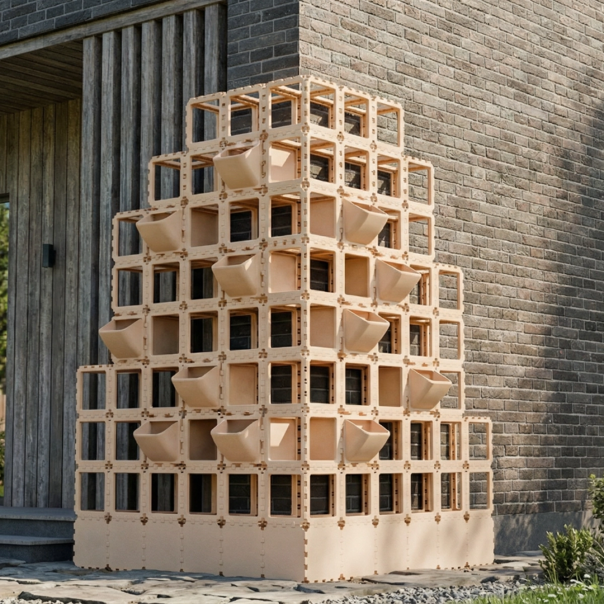 A modular vertical garden designed for courtyards and private outdoor spaces.