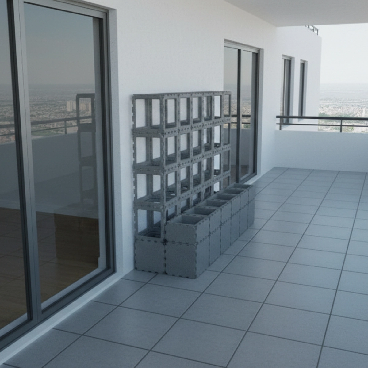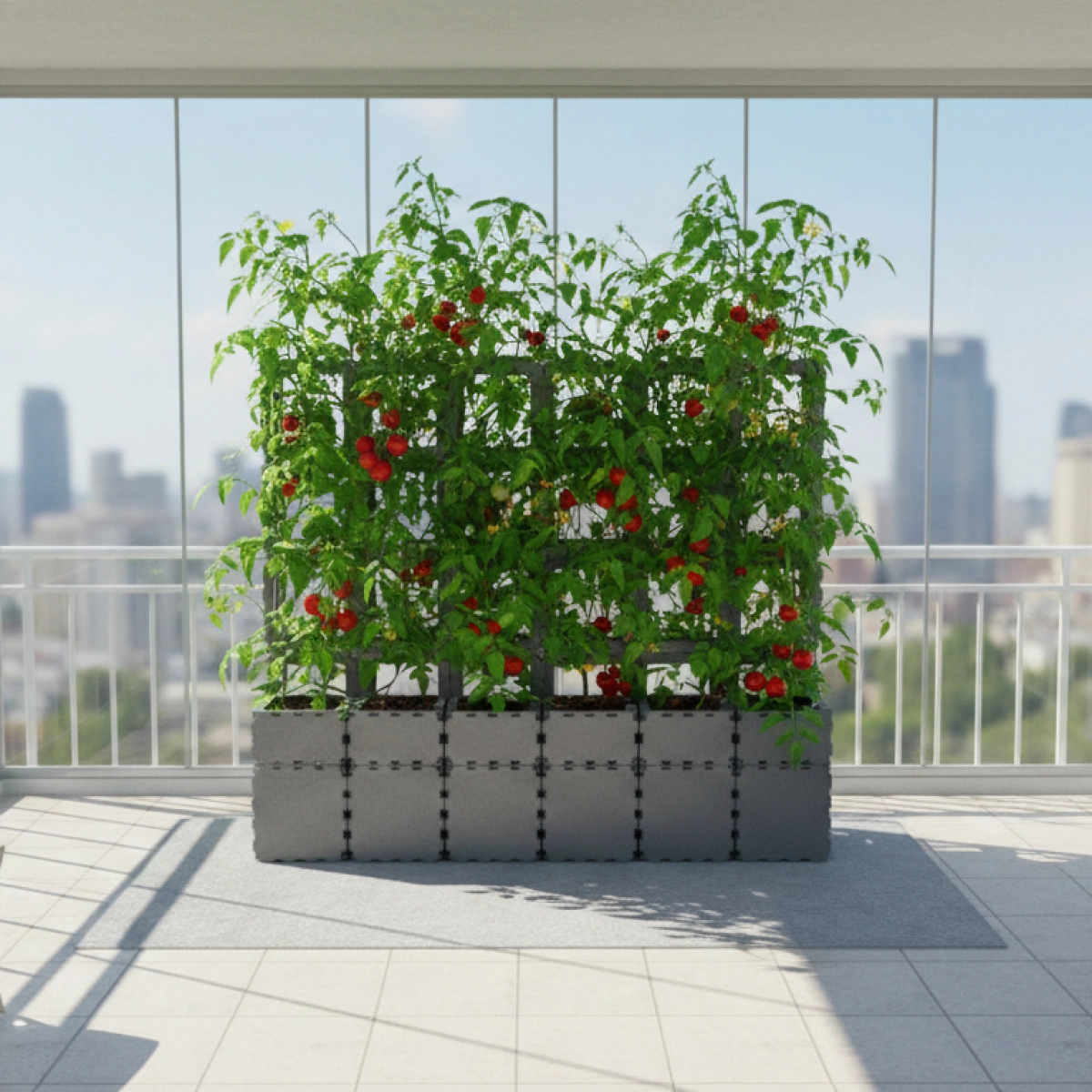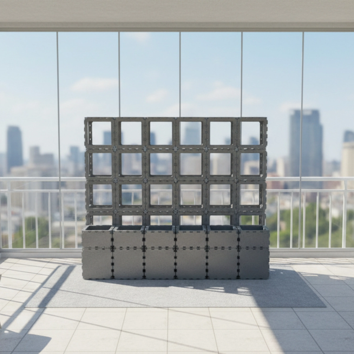A modern balcony planter with an integrated vertical trellis, designed специально for climbing and trailing plants. Built from durable Cubik.one modular cubes, this system allows you to grow зелёные стены прямо у себя дома, на террасе или балконе.