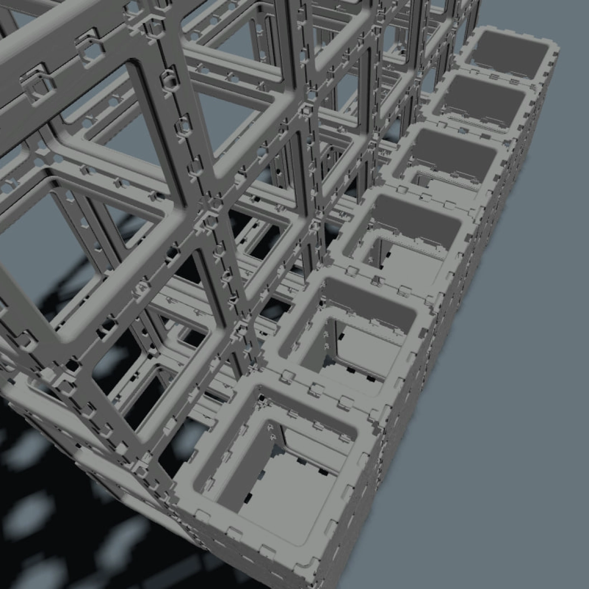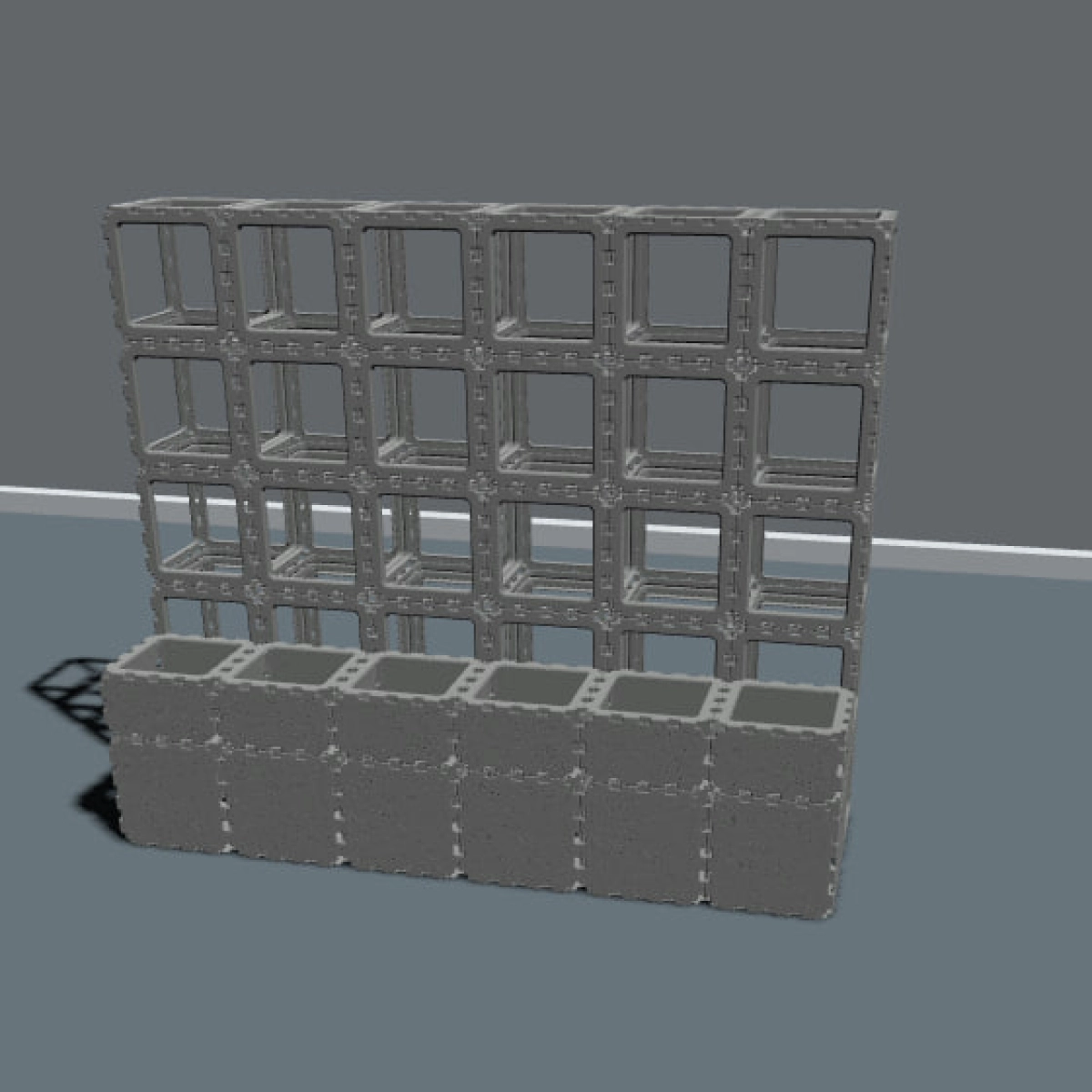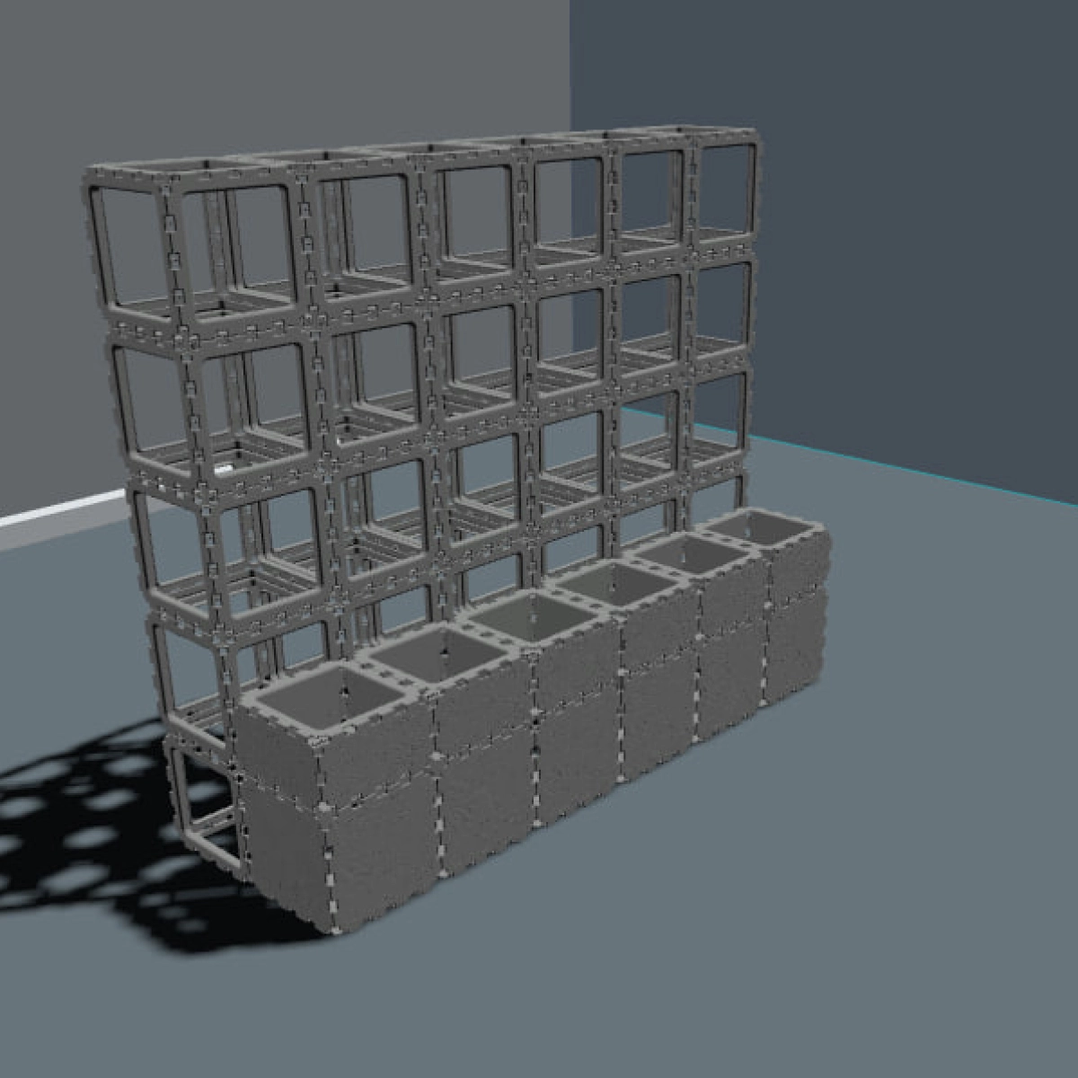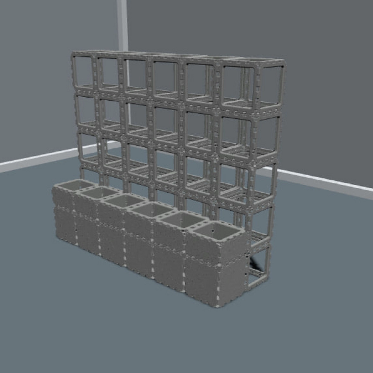 The lower modules work as spacious planters, while the upper grid structure supports vines and climbing greenery, creating a natural privacy screen and a living декоративный элемент.