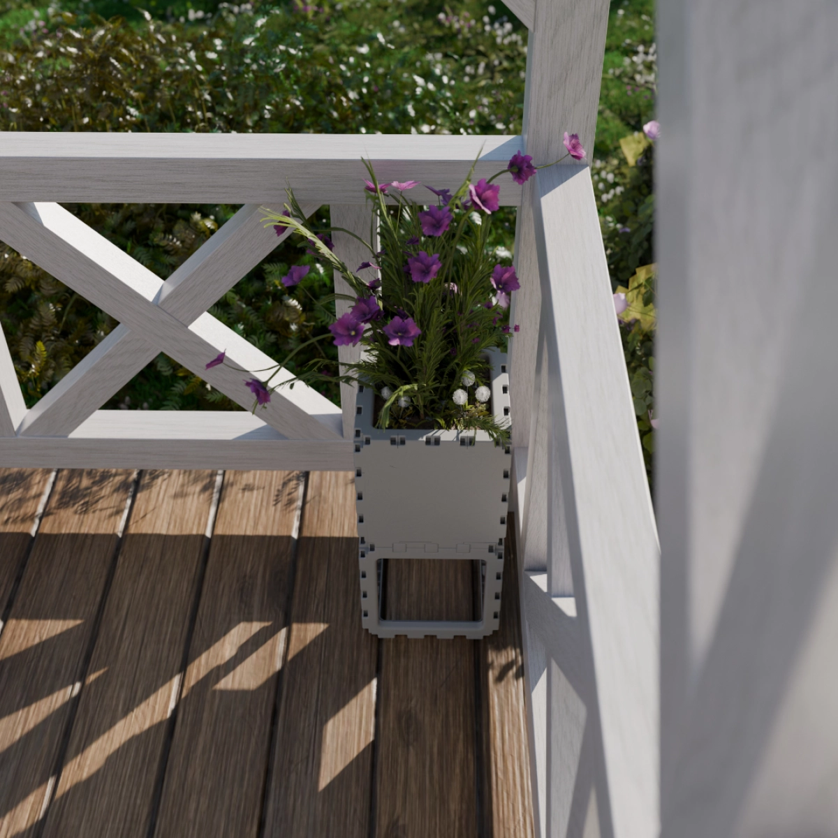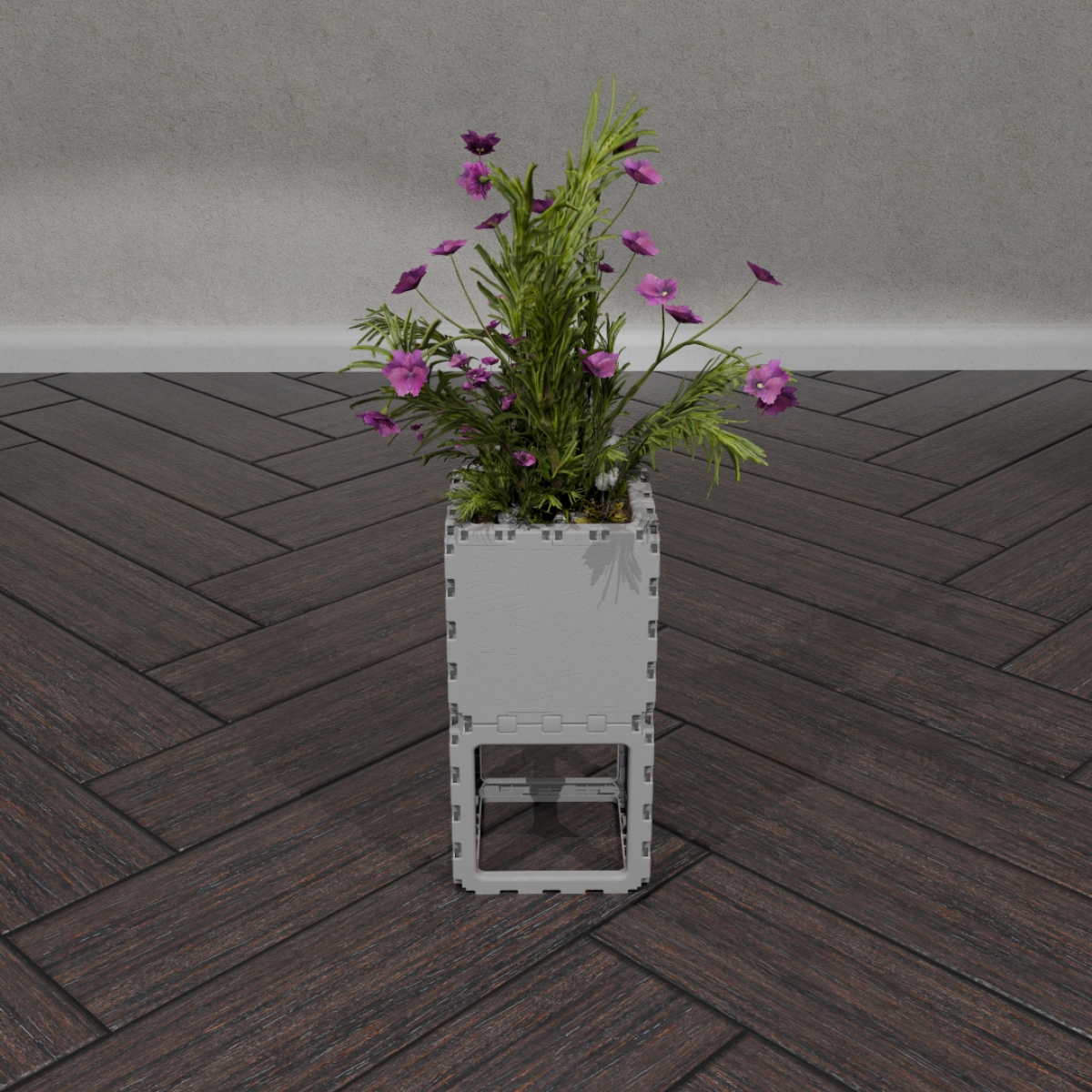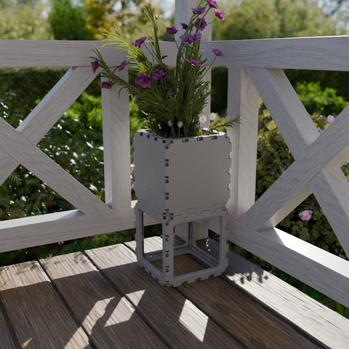 A compact modular planter made from two cubes. Ideal for a single plant or a small flower arrangement. Perfect for windowsills, balconies, or small garden spaces.
