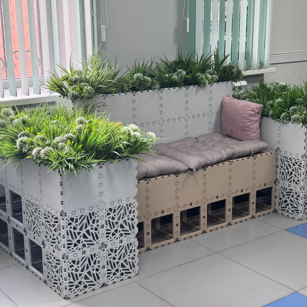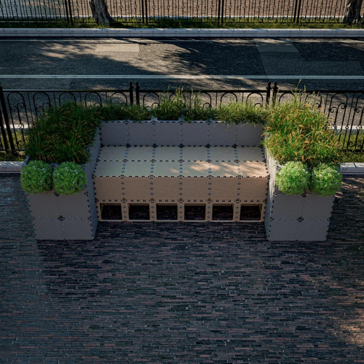 A comfortable bench framed by integrated planters on both sides and behind the backrest. Designed for 2–3 people, it blends seating and greenery into one cohesive form. Suitable for indoor or outdoor use — from offices and lobbies to terraces and parks. The modular construction allows easy customization of size, height, and design.