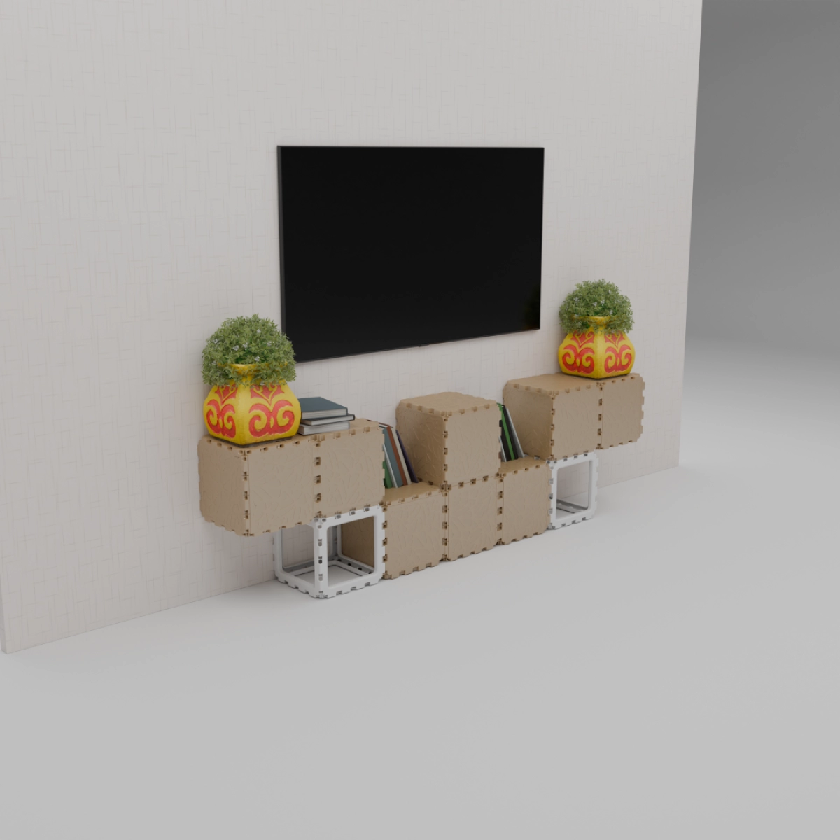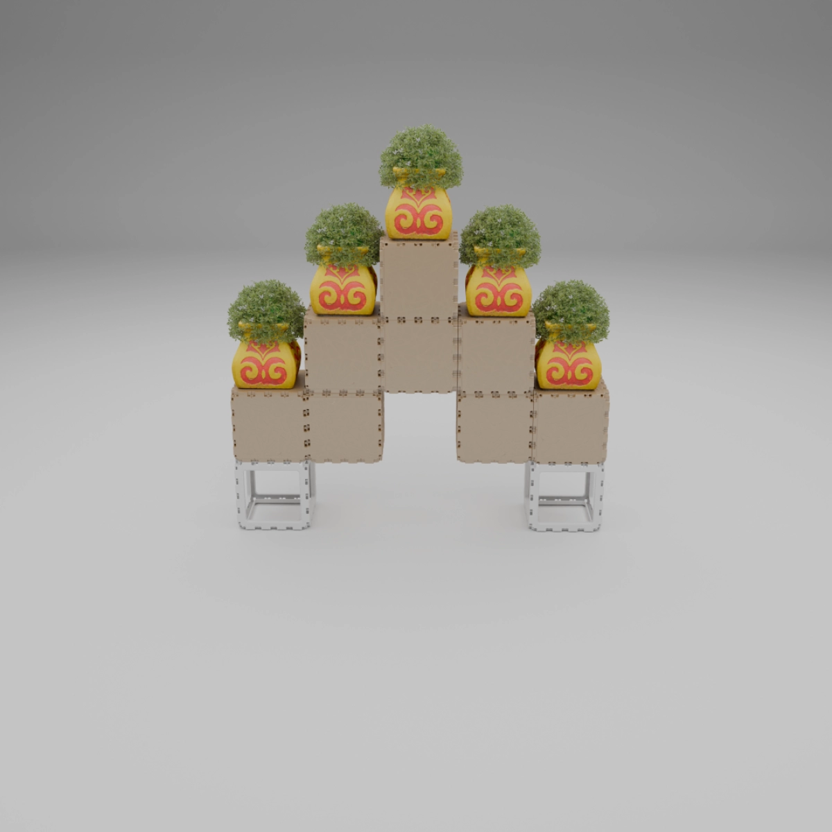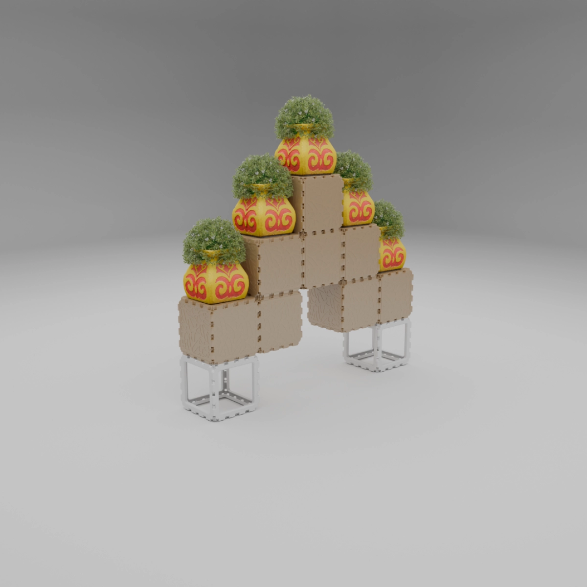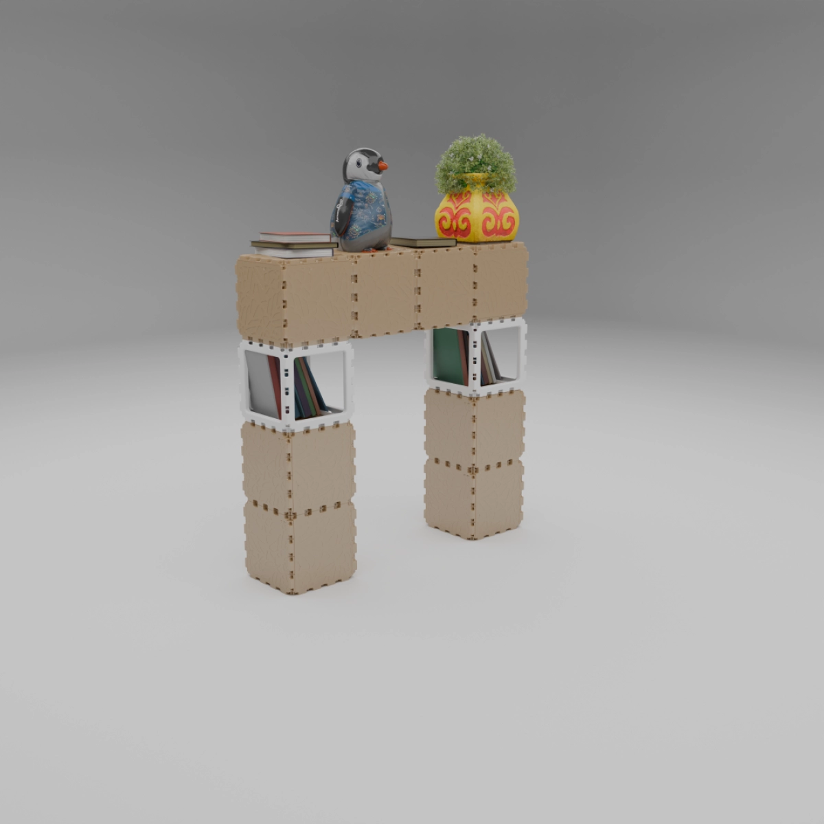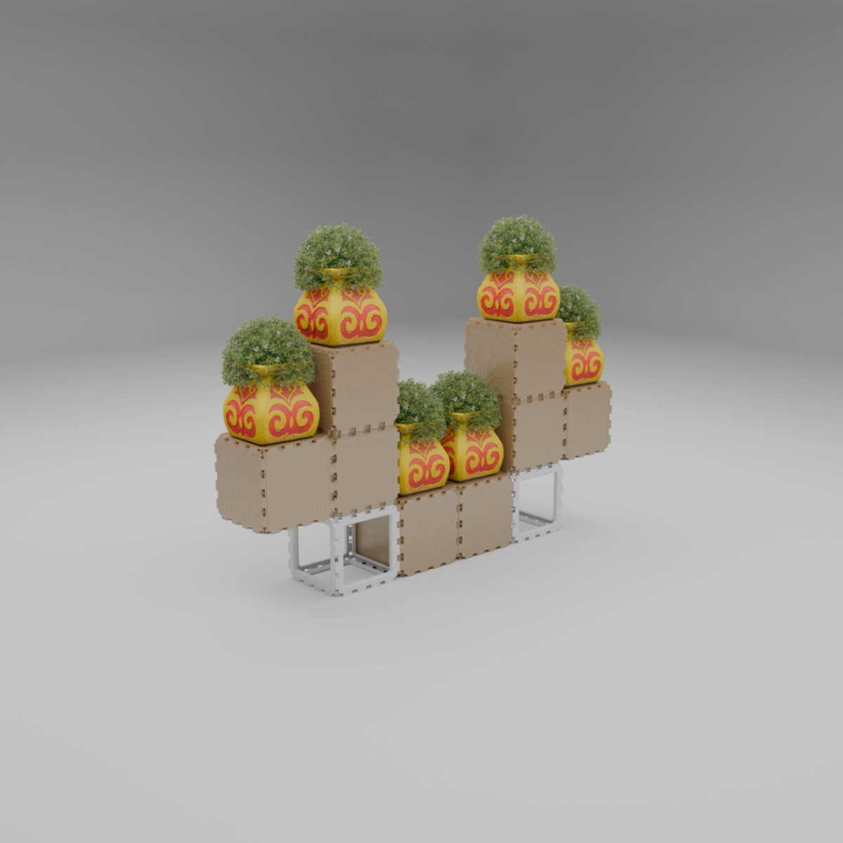A compact modular kit that lets you build a variety of small objects — from benches and shelves to decorative stands and planters. The examples shown are just a few of the countless combinations you can create. Each cube connects freely, allowing unlimited experimentation and personal expression. Designed for both indoor and outdoor use, this set is a simple way to explore the Cubik.one system and bring your own ideas to life.