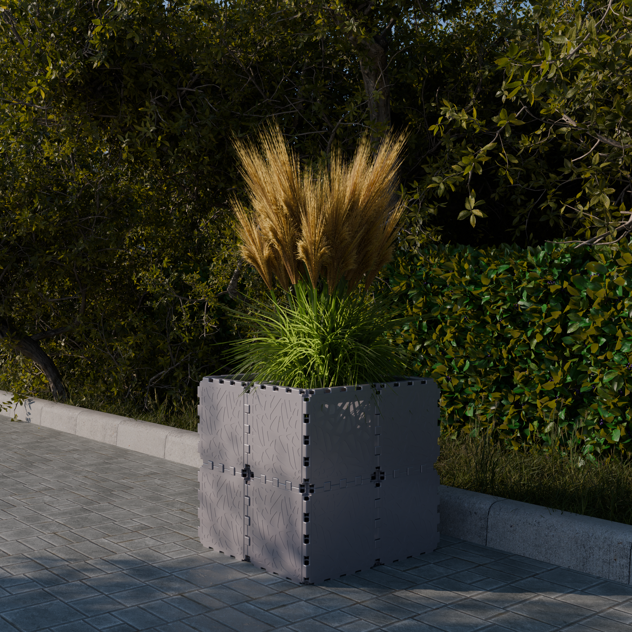Sama logiikka säilyy: kiinteiden, kertakäyttöisten ruukkujen sijaan käytät uudelleenkäytettäviä moduuleja, jotka voidaan järjestää uudelleen aina, kun puutarhan ulkoasu muuttuu.