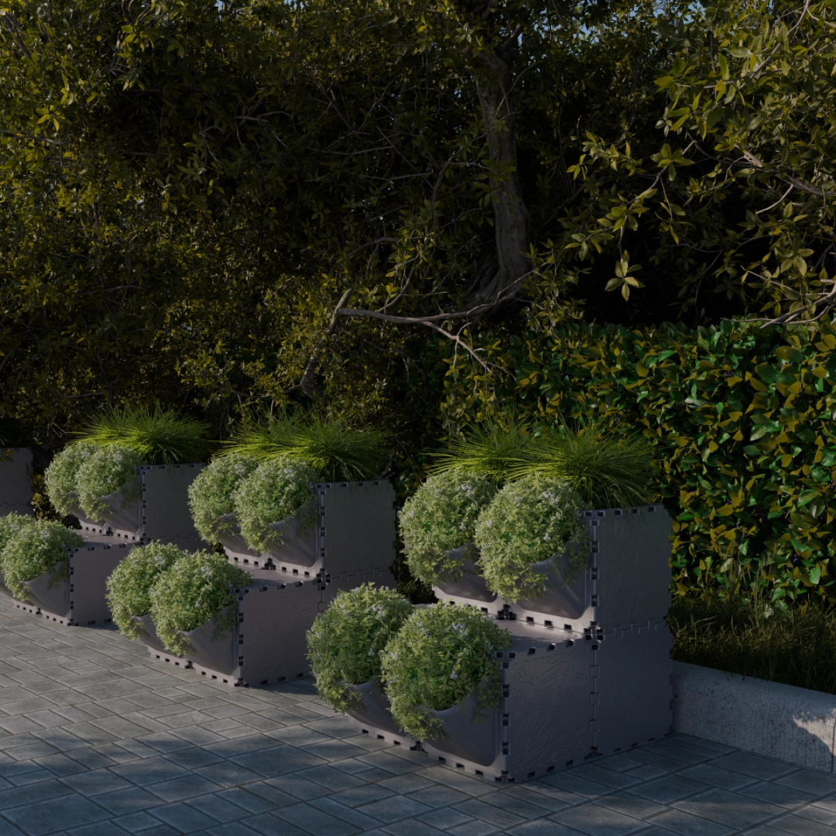 Modulaarinen kaksitasoinen istutusjärjestelmä, jossa on ulkonevat etutaskut reheviä, kerroksellisia koostumuksia varten. Ihanteellinen pienille pensaille, koristeheinille ja kaskadikasveille, jotka luovat pehmeän, dynaamisen reunan poluille ja julkisivuille. Asennusaika - noin 20 minuuttia.