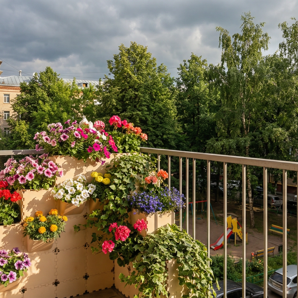 Modułowa, wielopoziomowa donica w kształcie schodkowej piramidy, zaprojektowana z myślą o balkonach i kompaktowych przestrzeniach zewnętrznych. Wielopoziomowa struktura tworzy pionową głębię, podczas gdy wystające kieszenie Flora wspierają warstwowe nasadzenia i wizualny rytm. Nadaje się do kwiatów, ziół i małych roślin, pozwala zbudować gęsty, rzeźbiarski ogród o minimalnej powierzchni.