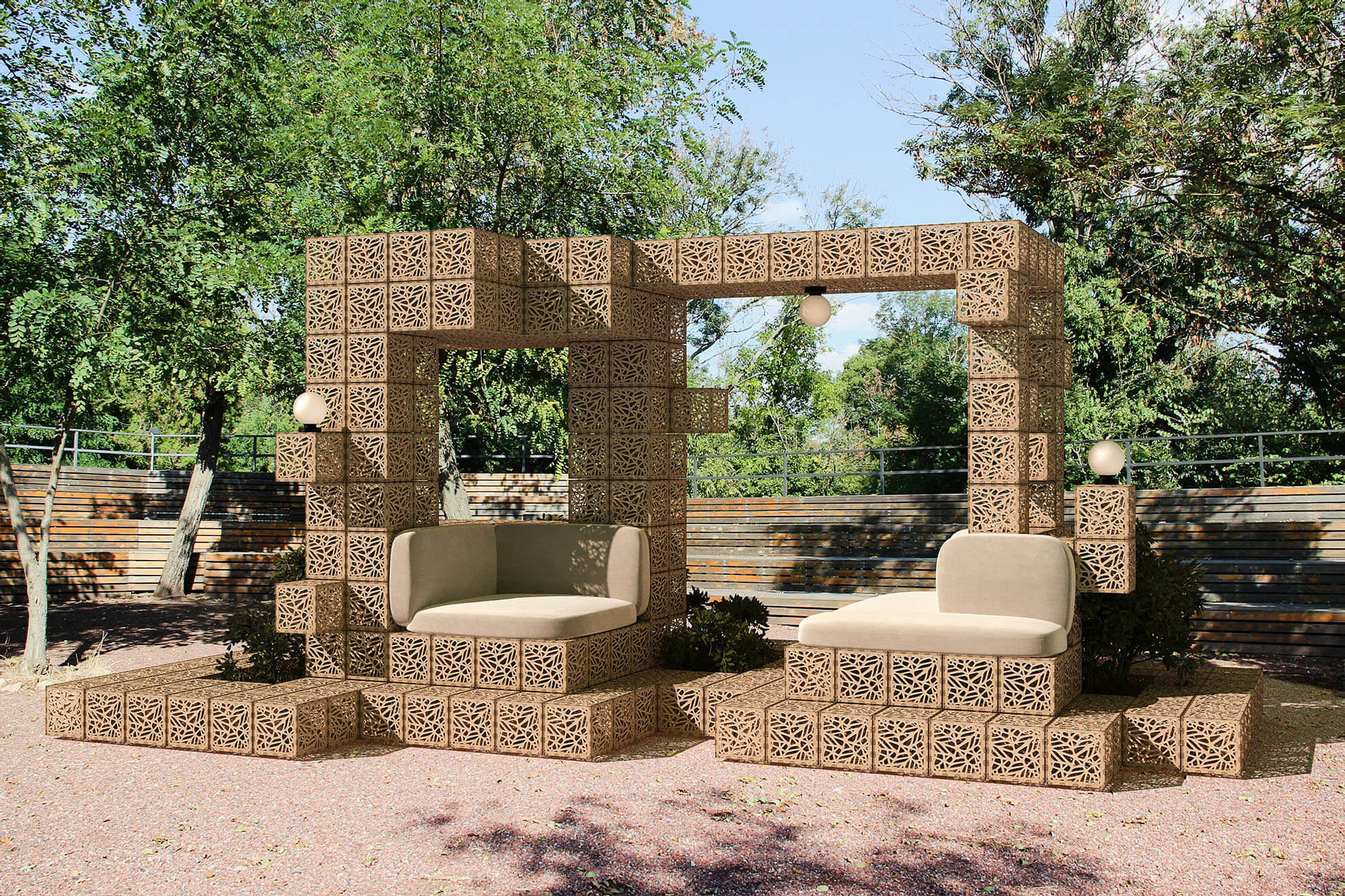 - Lastro que pode ser visto (blocos de concreto/ferro) ou lastro que se parece com mobília ( plantadores e bancos Cubik.one preenchidos com terra ou areia). Ótimo quando o local do evento proíbe a perfuração.