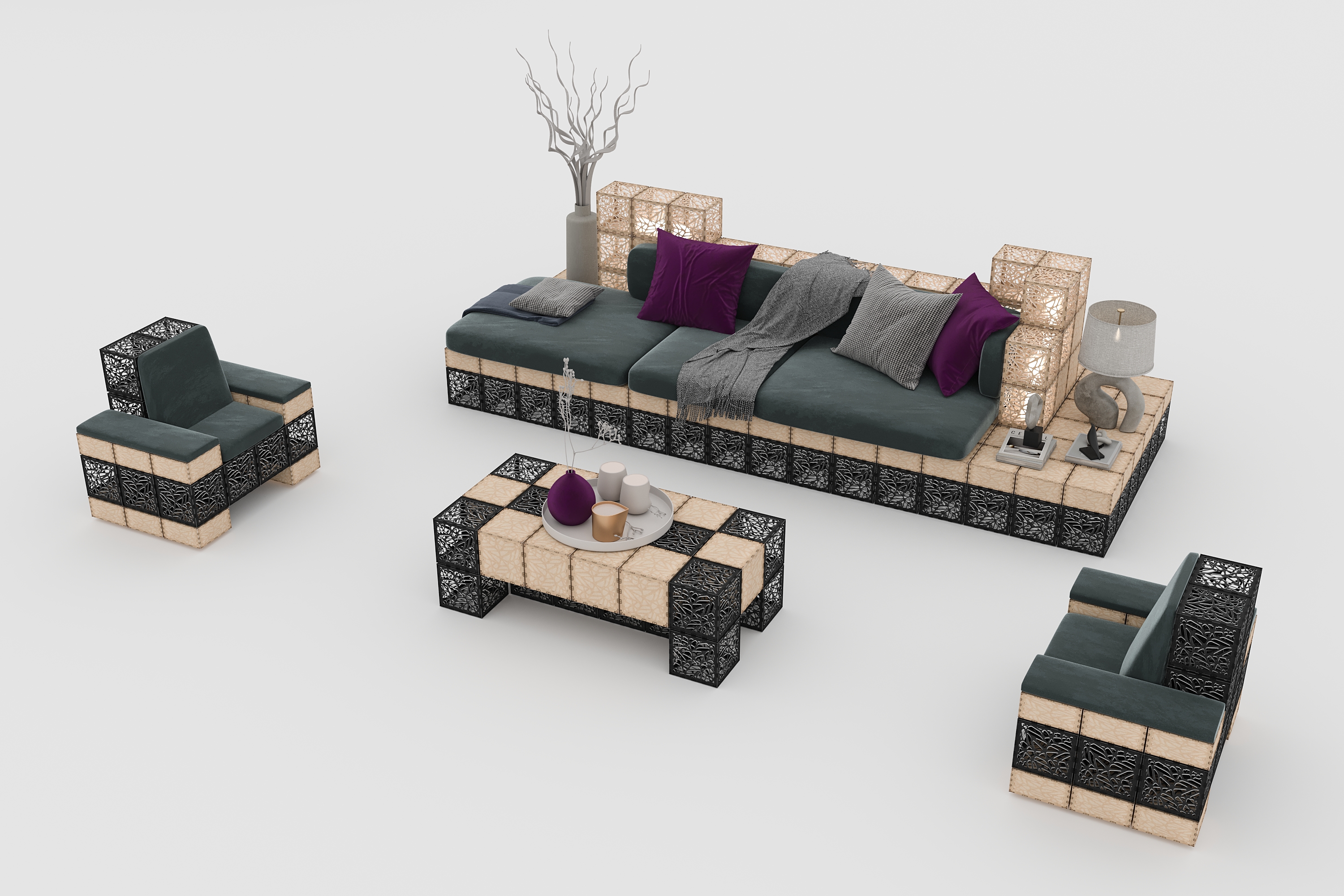 Infuzați personalitate în zonele dvs. de oaspeți cu un decor creativ construit folosind cuburi Cubik.One. De la ghivece la pereți despărțitori, fiecare design prezintă eleganță modernă și ingeniozitate modulară.