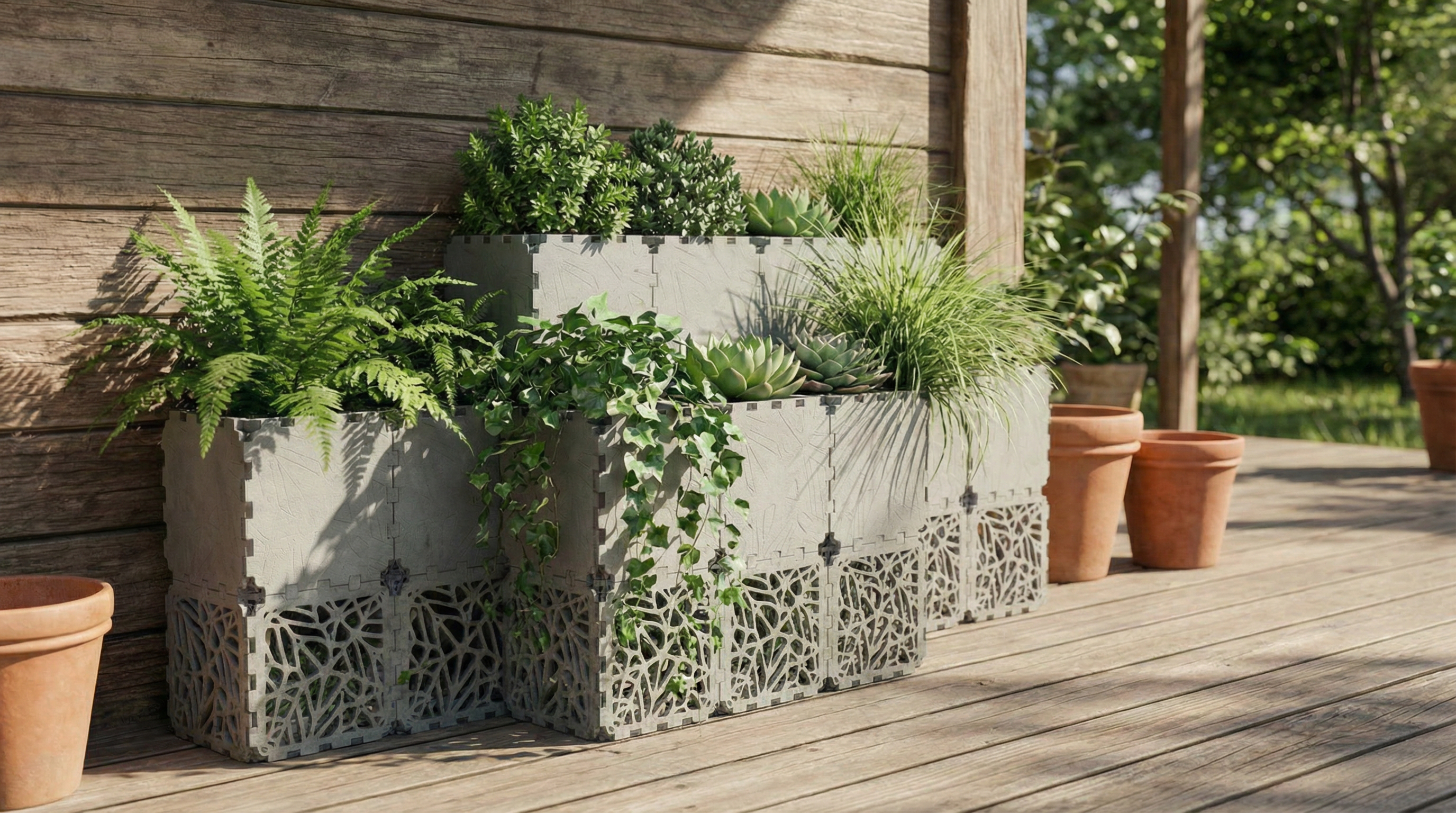 Samma logik gäller fortfarande: i stället för fasta krukor för engångsbruk arbetar du med återanvändbara moduler som kan omorganiseras när trädgårdslayouten ändras.