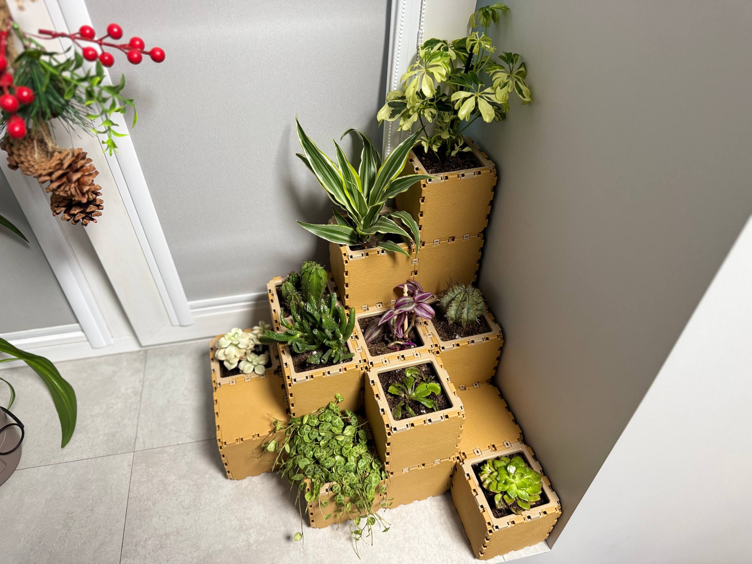 Skapa inomhusoaser som anpassar sig till din livsstil och miljö. Cubik.one låter dig bygga robusta, eleganta miniträdgårdar - från kompakta suckulenter till botaniska arrangemang i flera nivåer - och sedan omforma dem när som helst med samma uppsättning moduler. Oavsett om du arbetar på ett hemmakontor, är en minimalistisk inredare eller en växtentusiast får du flexibiliteten att odla utan att stöka till eller behöva permanenta installationer.